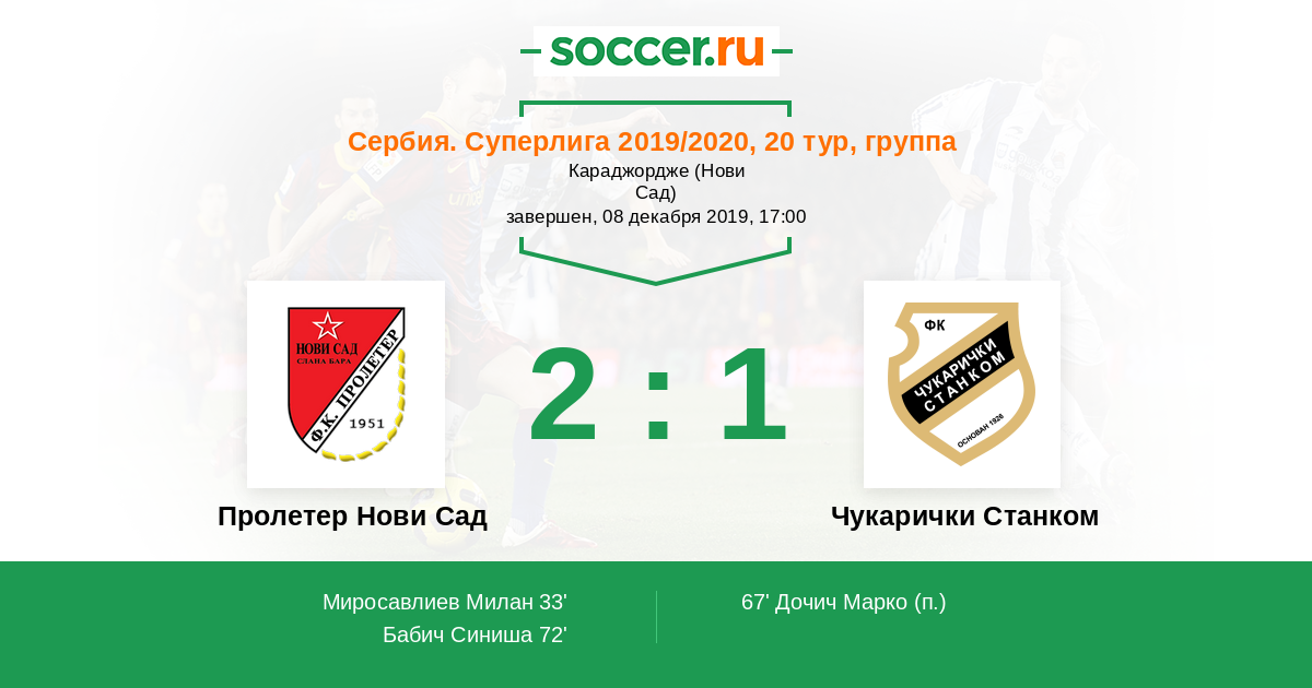 Протокол матча Пролетер Нови Сад против Чукарички Станком