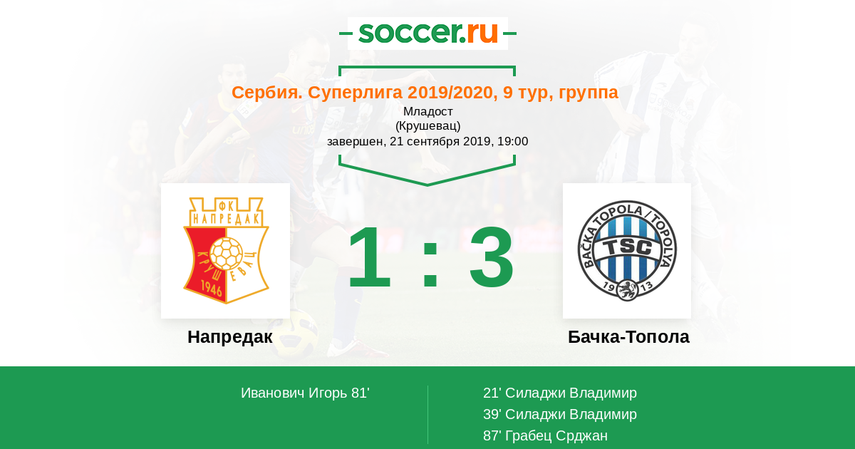21' (0:1) Силаджи Владимир (9)
