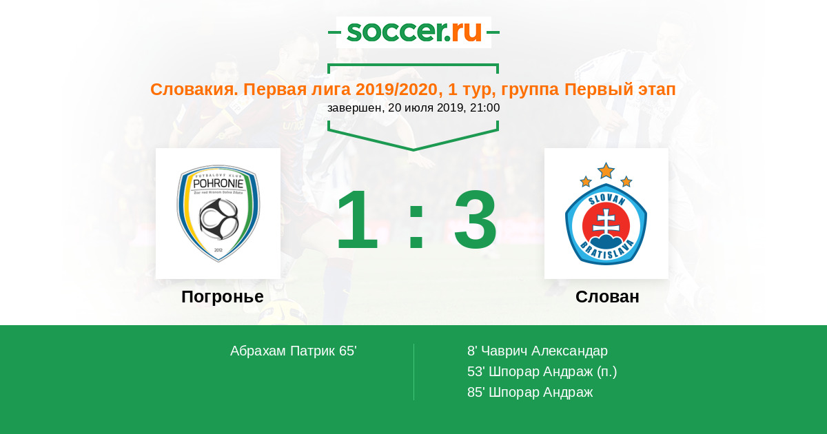 Протокол матча Погронье против Слован