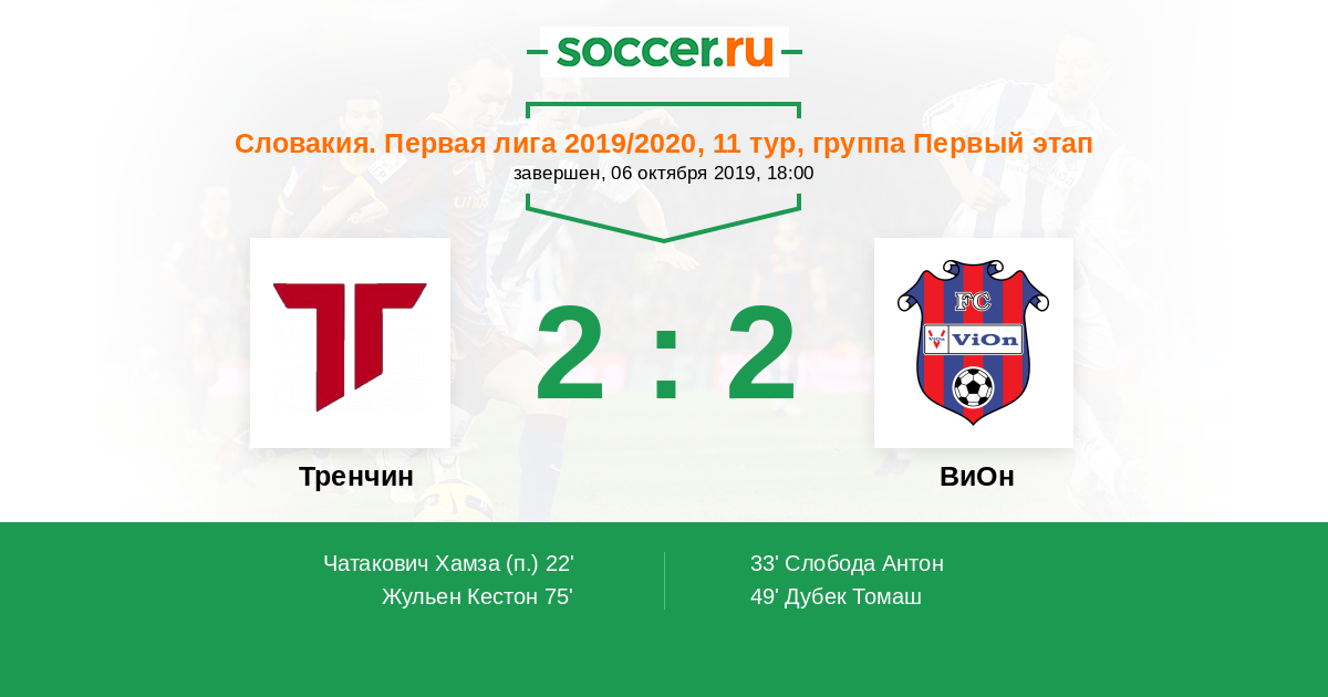Протокол матча Тренчин против ВиОн