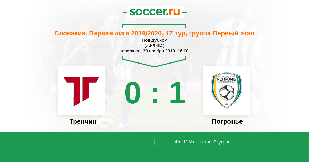 Протокол матча Тренчин против Погронье