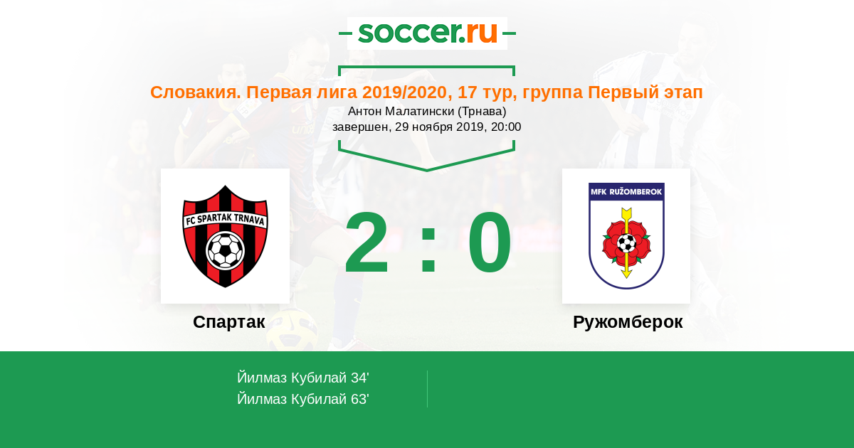 Протокол матча Спартак против Ружомберок