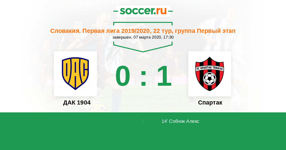 Протокол матча ДАК 1904 против Спартак