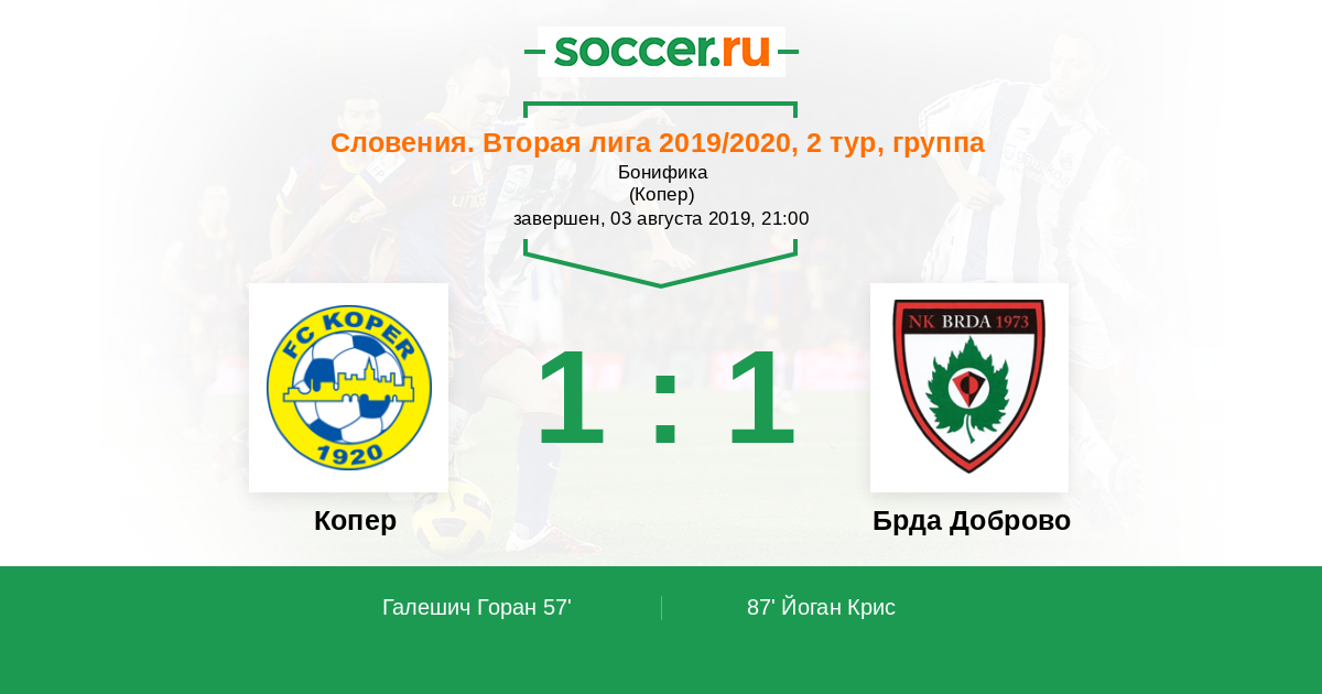 Протокол матча Копер против Брда Доброво