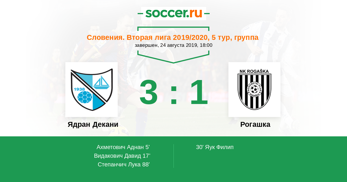 Протокол матча Ядран Декани против Рогашка