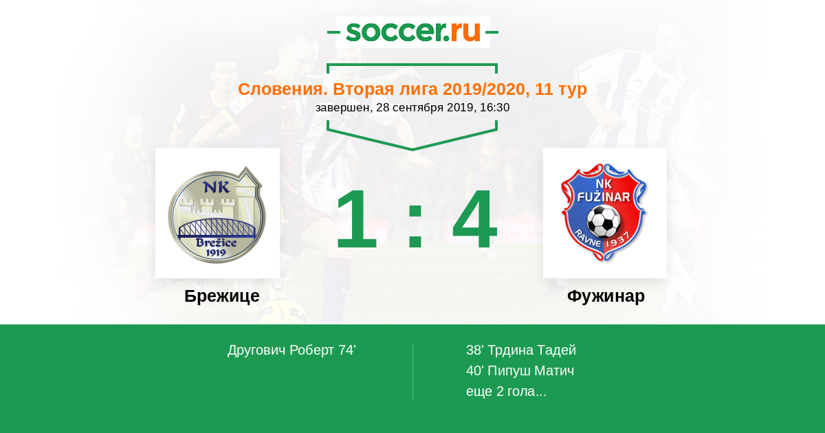 Протокол матча Брежице против Фужинар