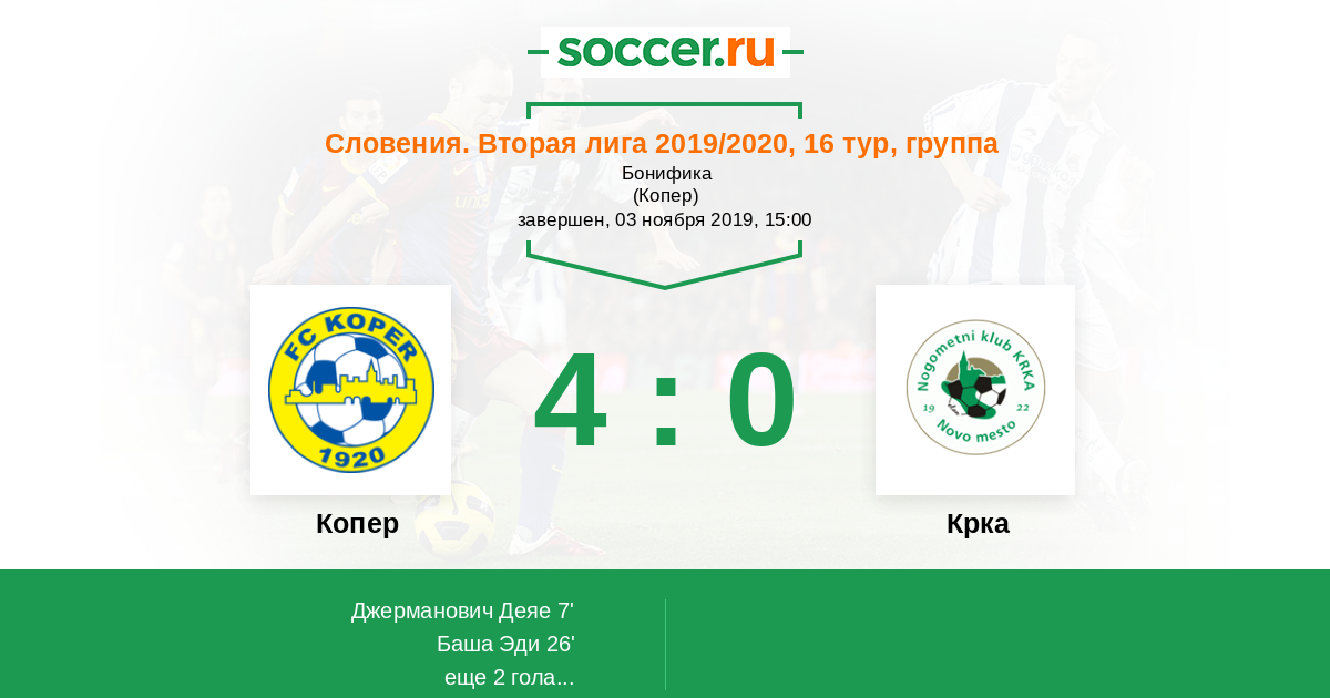 Протокол матча Копер против Крка