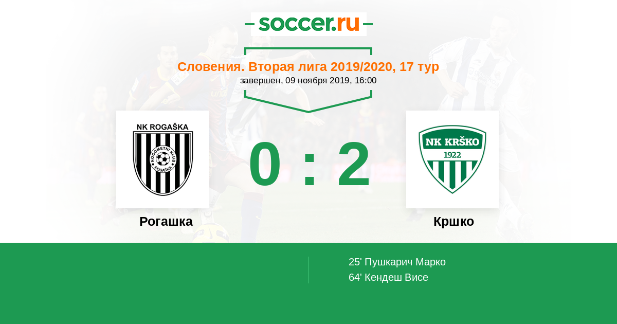 Протокол матча Рогашка против Кршко