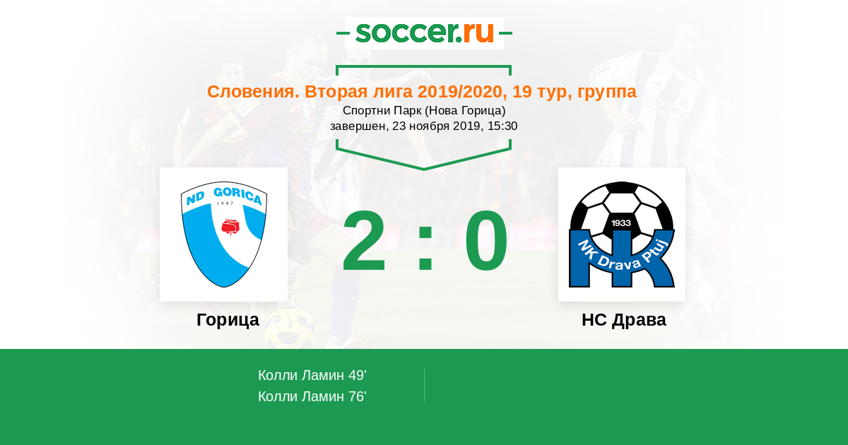 Протокол матча Горица против НС Драва