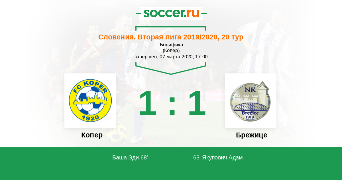 Протокол матча Копер против Брежице