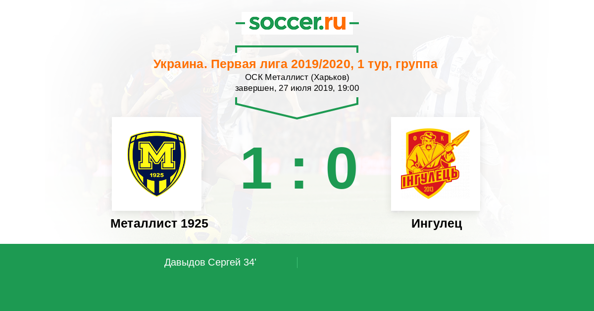 Протокол матча Металлист 1925 против Ингулец