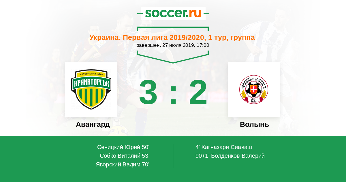 Протокол матча Авангард против Волынь