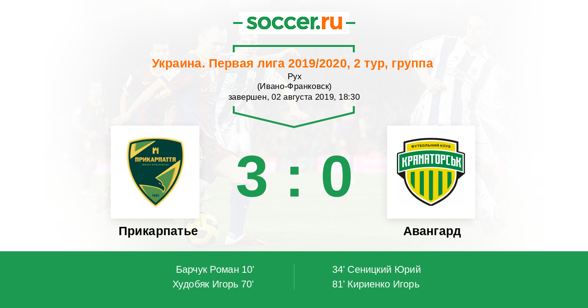 Протокол матча Прикарпатье против Авангард