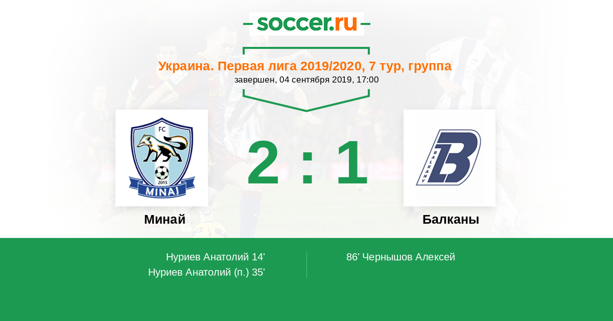 Протокол матча Минай против Балканы
