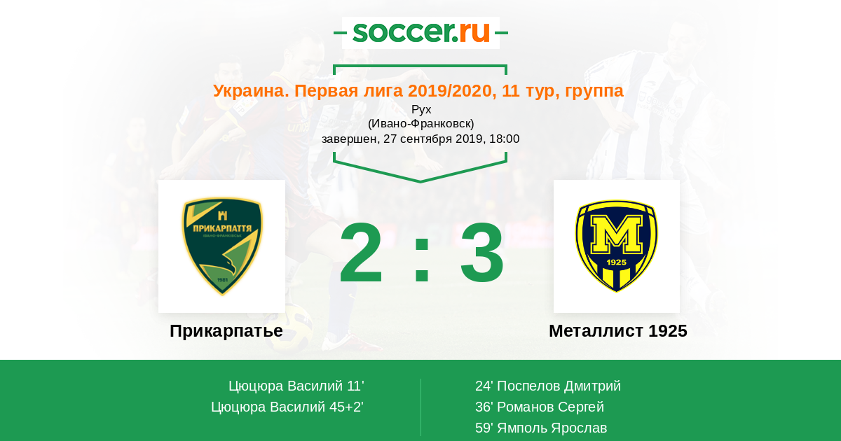 Протокол матча Прикарпатье против Металлист 1925