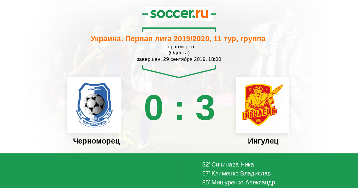 Протокол матча Черноморец против Ингулец