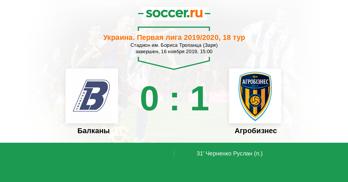Протокол матча Балканы против Агробизнес
