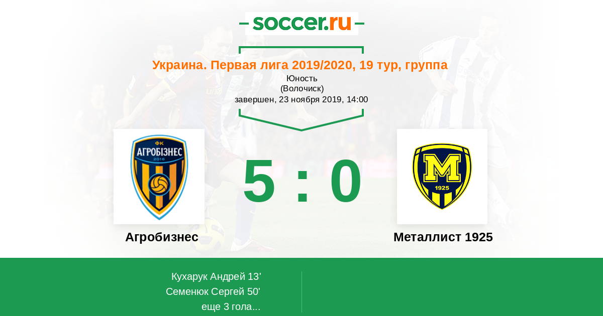 Протокол матча Агробизнес против Металлист 1925