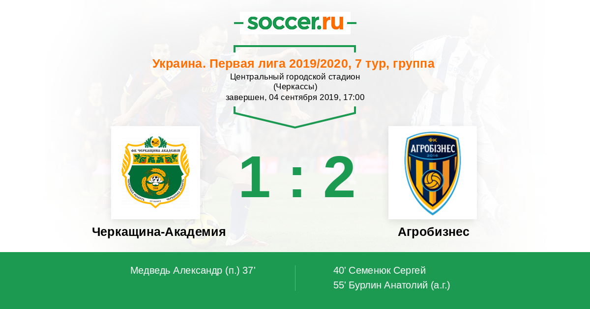 Протокол матча Черкащина-Академия против Агробизнес