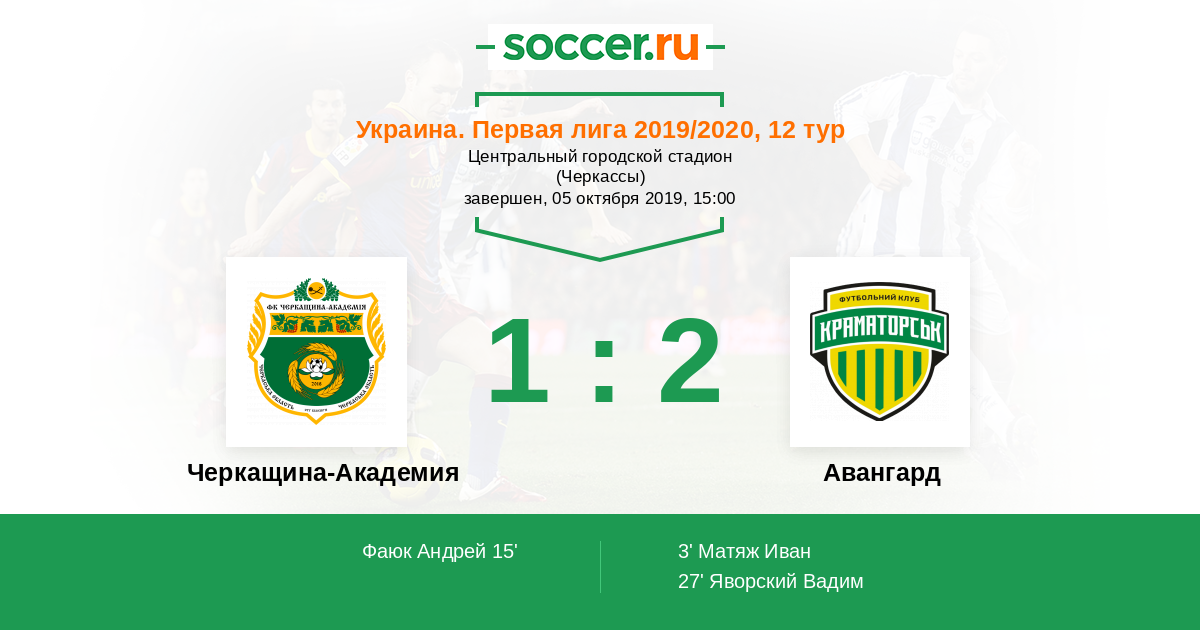 Протокол матча Черкащина-Академия против Авангард