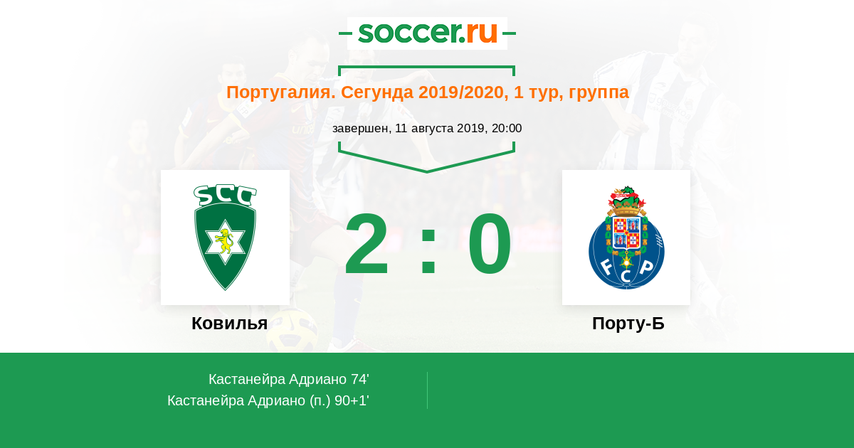 Протокол матча Ковилья против Порту-Б