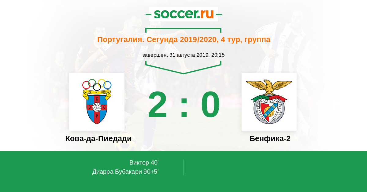 Протокол матча Кова-да-Пиедади против Бенфика-2