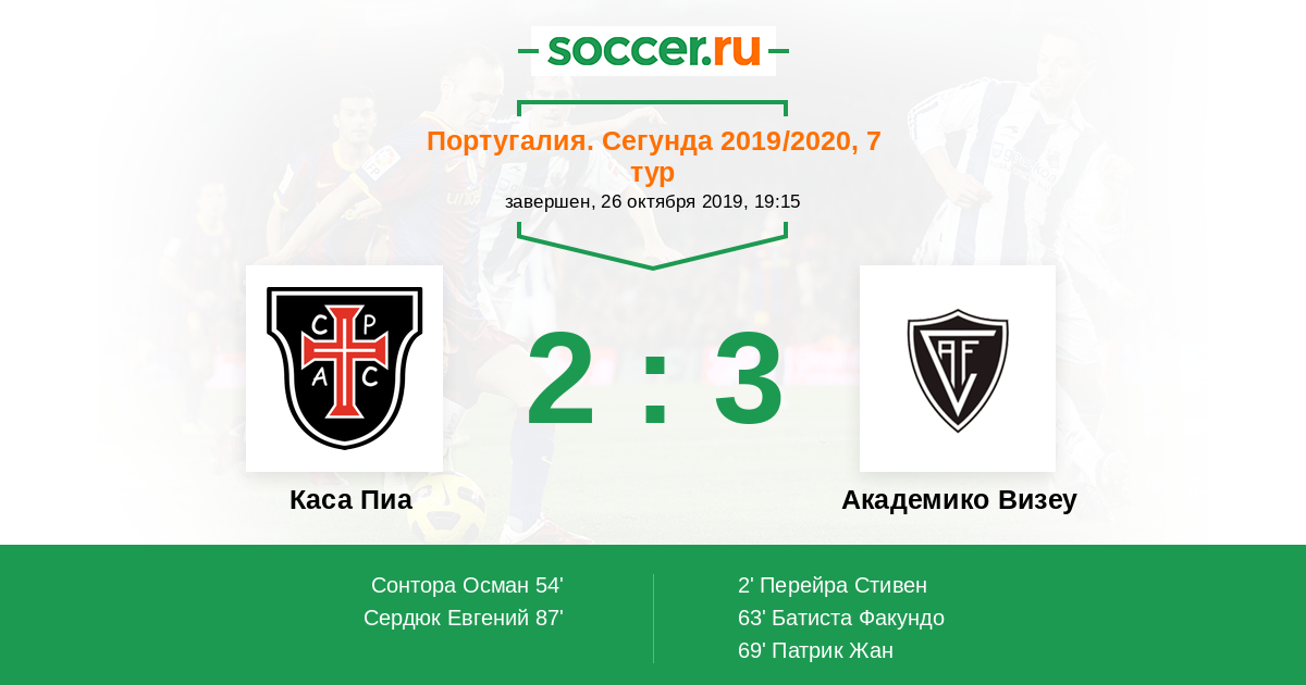 Протокол матча Каса Пиа против Академико Визеу
