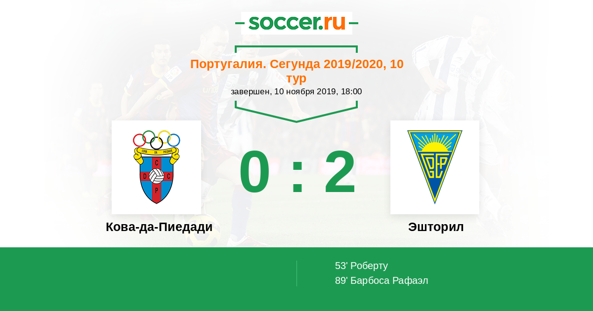 Протокол матча Кова-да-Пиедади против Эшторил