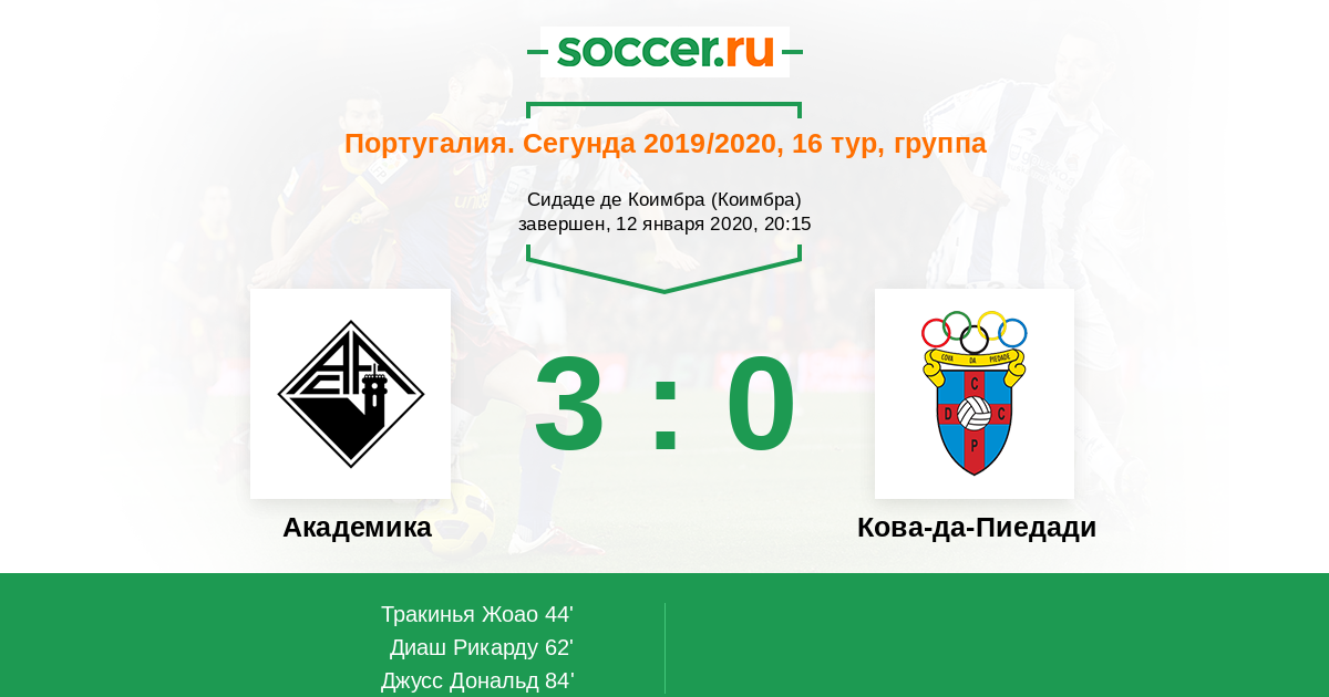 Протокол матча Академика против Кова-да-Пиедади