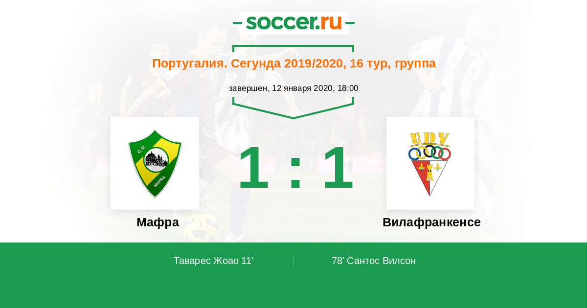 Протокол матча Мафра против Вилафранкенсе