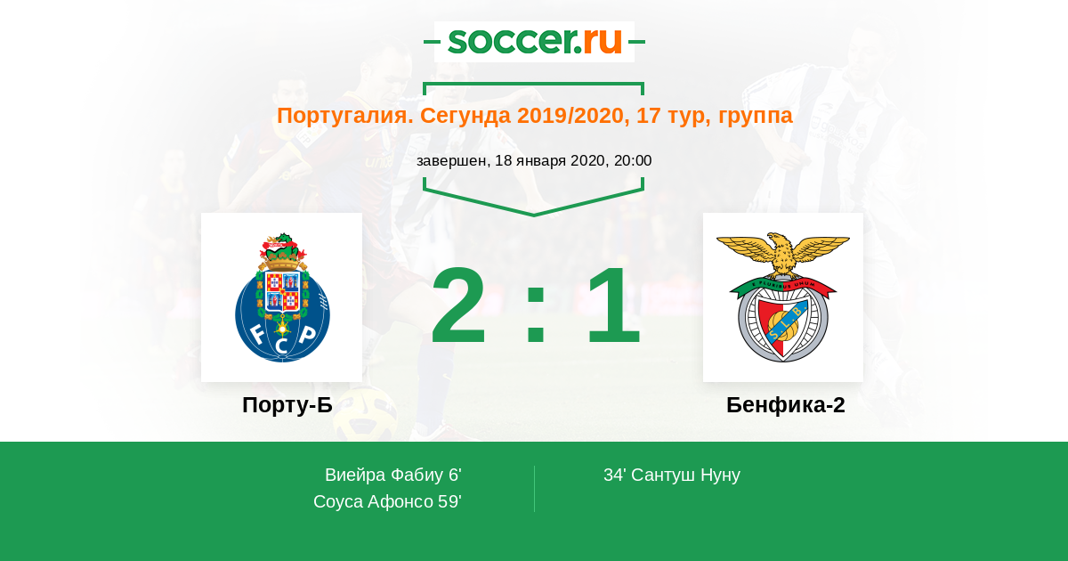 Протокол матча Порту-Б против Бенфика-2