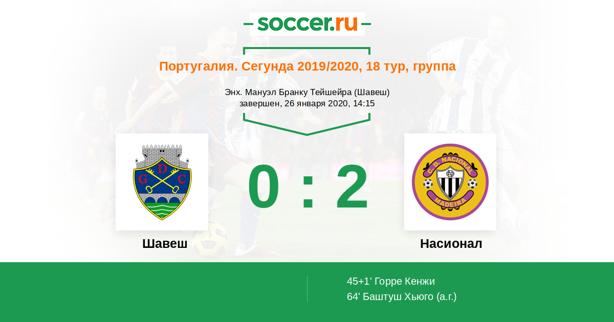 Протокол матча Шавеш против Насионал