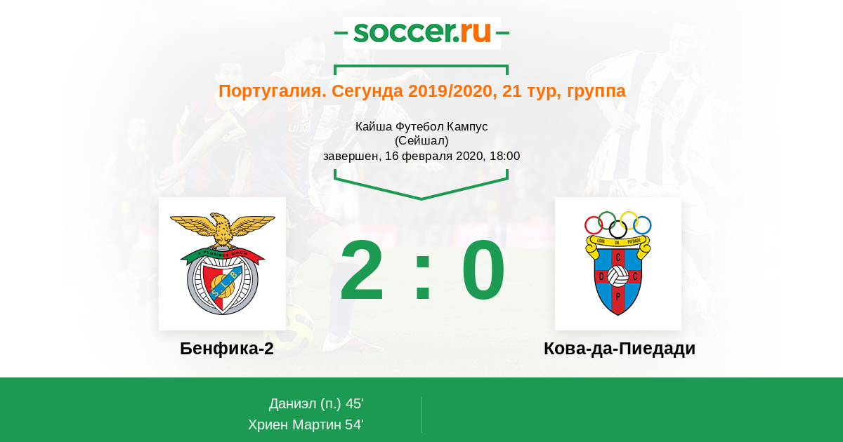 Протокол матча Бенфика-2 против Кова-да-Пиедади