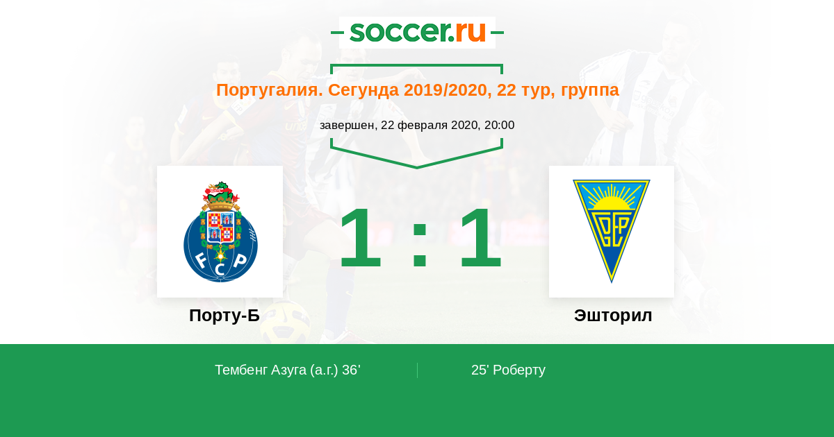Протокол матча Порту-Б против Эшторил