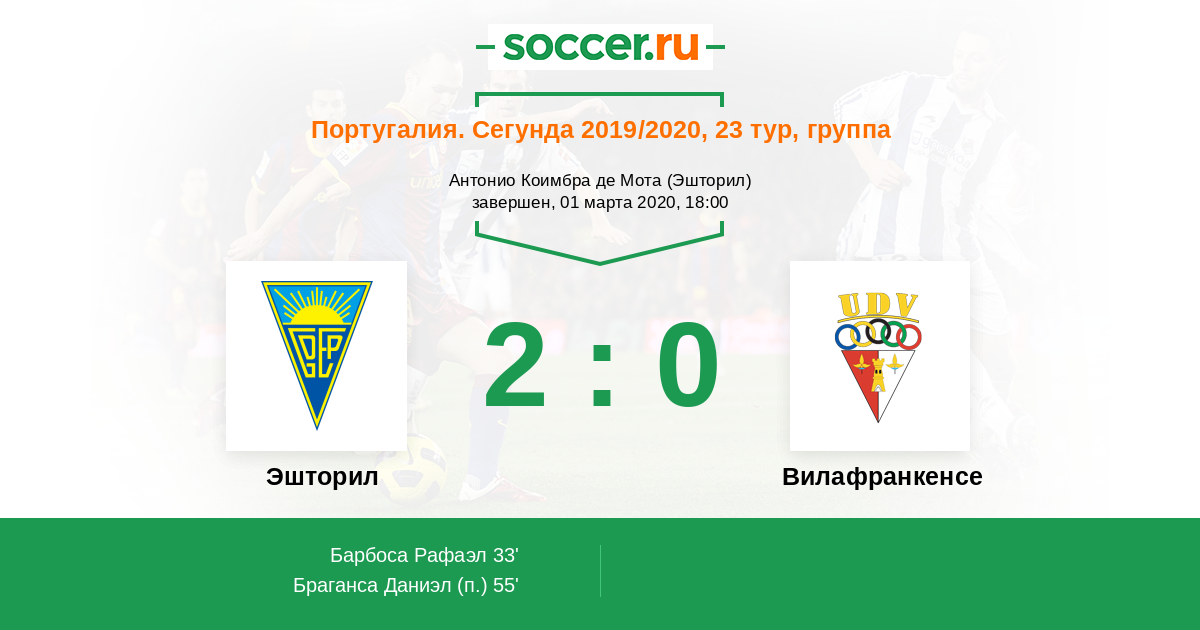 Протокол матча Эшторил против Вилафранкенсе