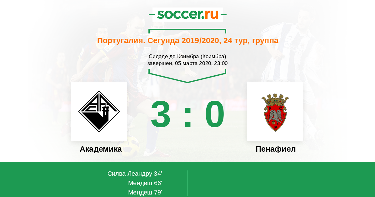 Протокол матча Академика против Пенафиел