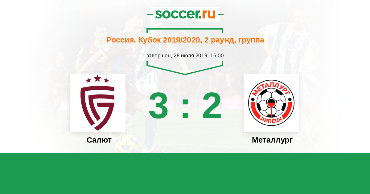 Россия. Вторая лига. Группа 3 23.08.2020 Металлург Логотип футбольный клуб Металлург (Липецк) 1:2 Логотип футбольный клуб Салют (Белгород) Салют