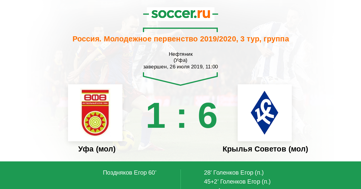 Протокол матча Уфа (мол) против Крылья Советов (мол)
