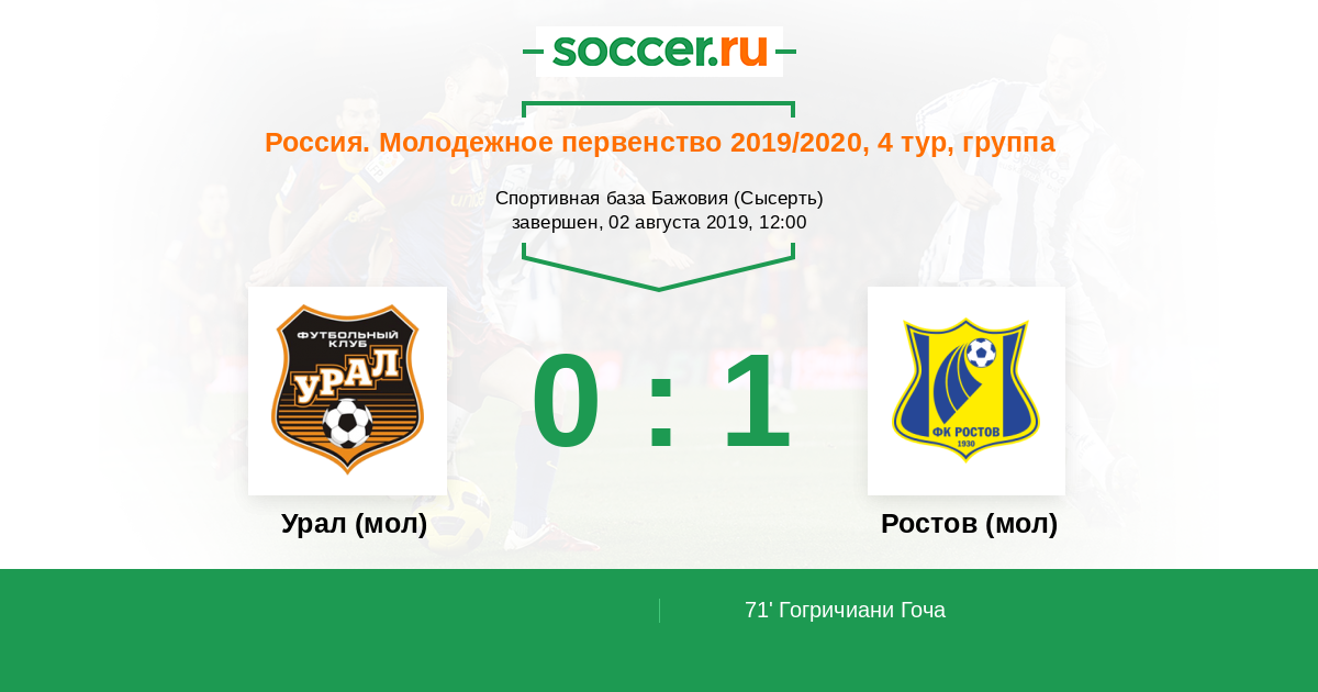 Протокол матча Урал (мол) против Ростов (мол)