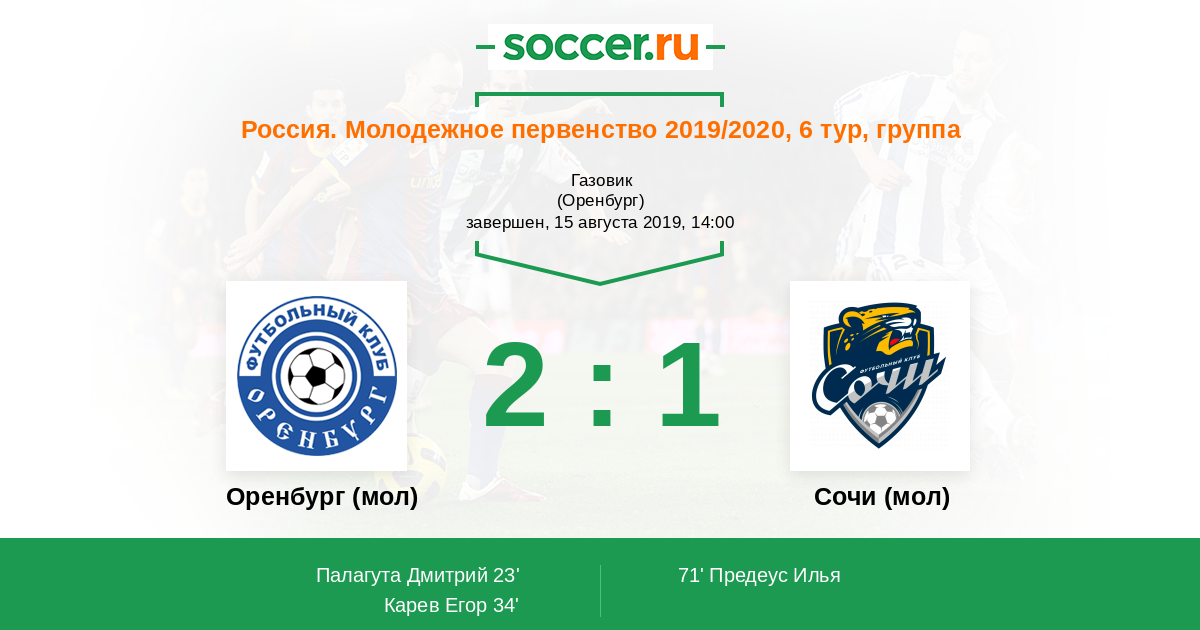 Протокол матча Оренбург (мол) против Сочи (мол)