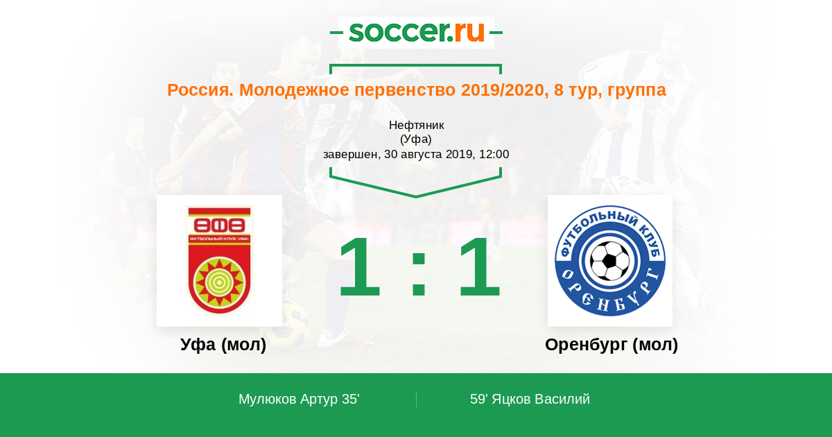Протокол матча Уфа (мол) против Оренбург (мол)