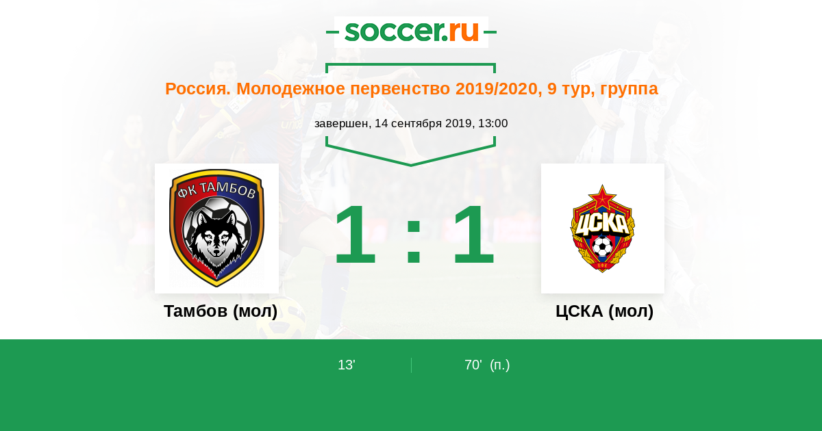 Протокол матча Тамбов (мол) против ЦСКА (мол)