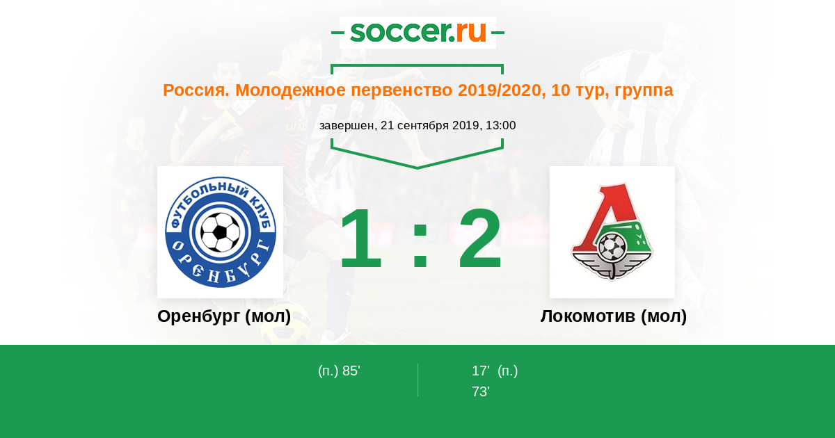Протокол матча Оренбург (мол) против Локомотив (мол)