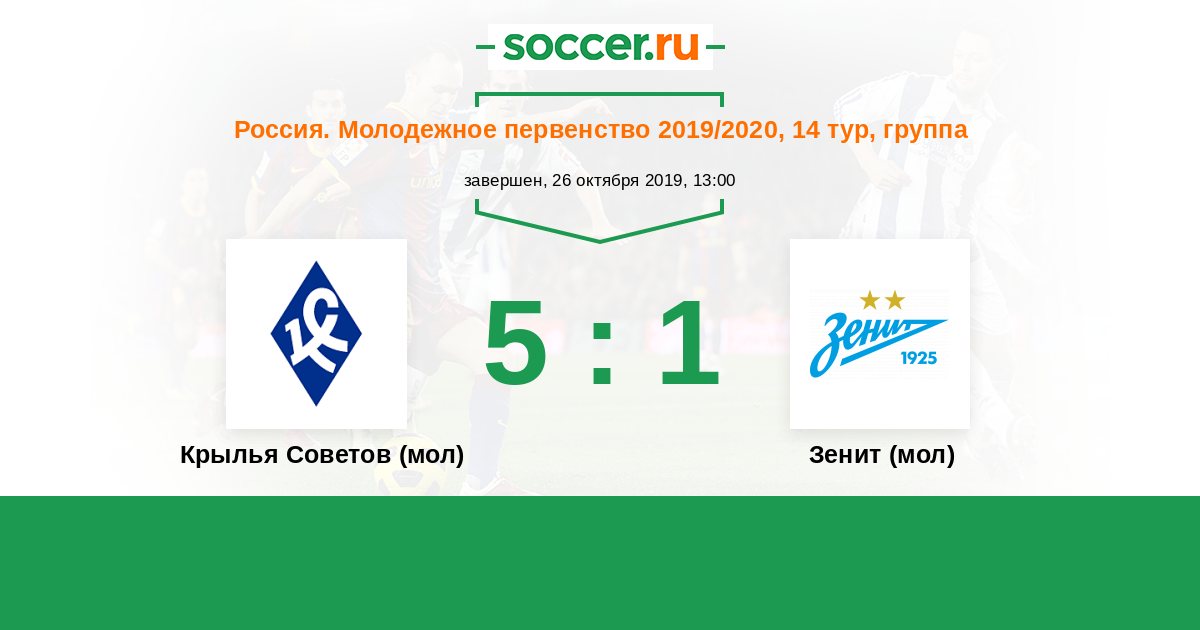 Россия. Премьер-Лига U21 24.09.2013 Крылья Советов (мол) Логотип футбольный клуб Крылья Советов (мол) (Самара) 3:1 Логотип футбольный клуб Зенит (мол) (Санкт-Петербург) Зенит (мол)