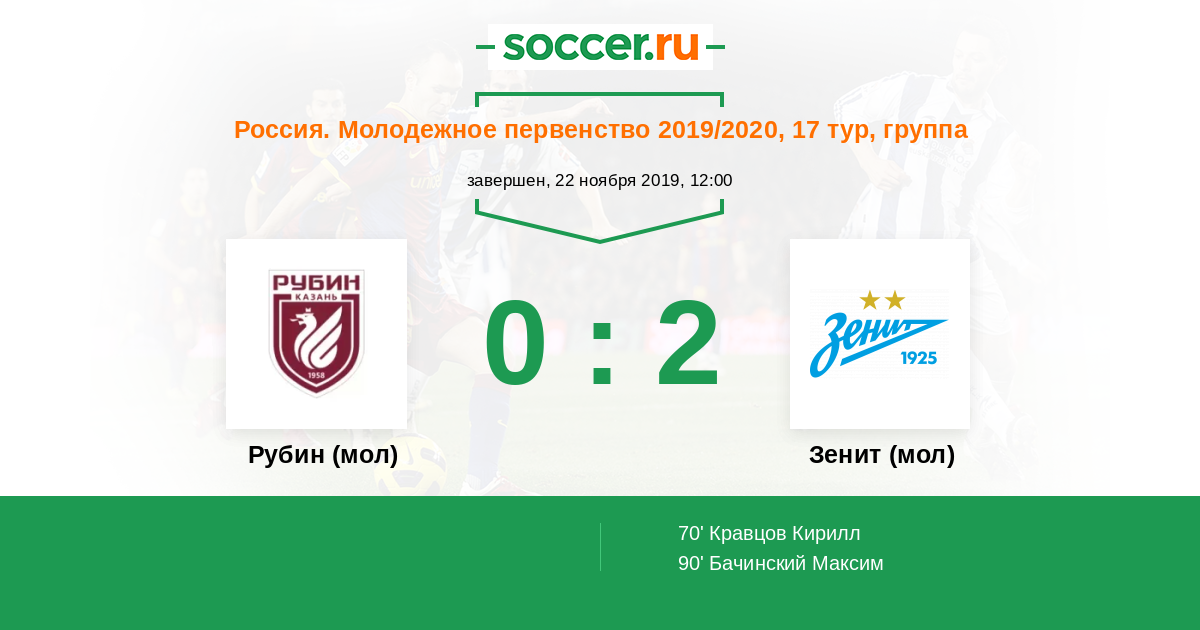 Протокол матча Рубин (мол) против Зенит (мол)