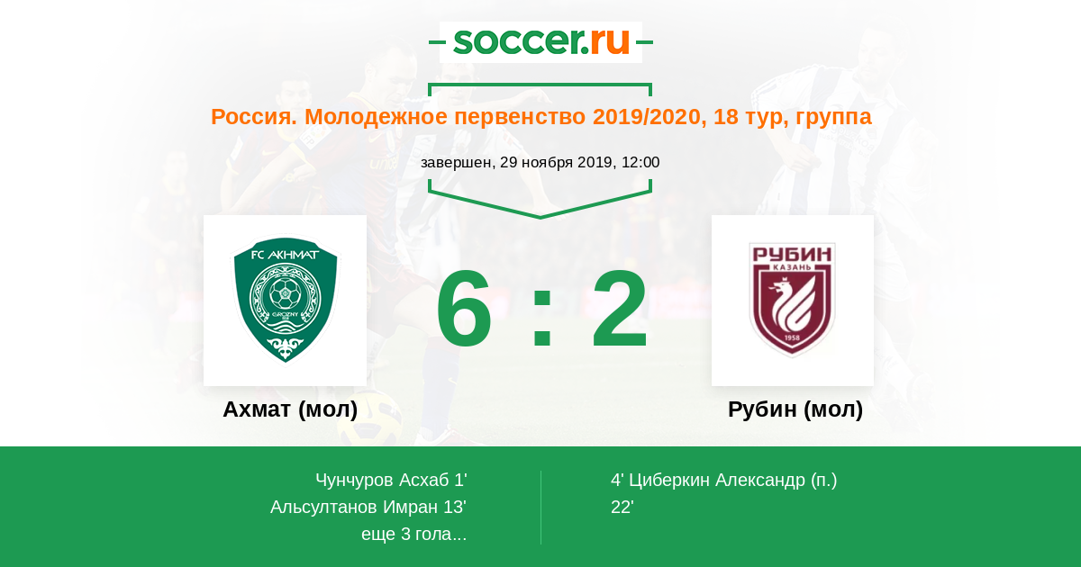 Протокол матча Ахмат (мол) против Рубин (мол)