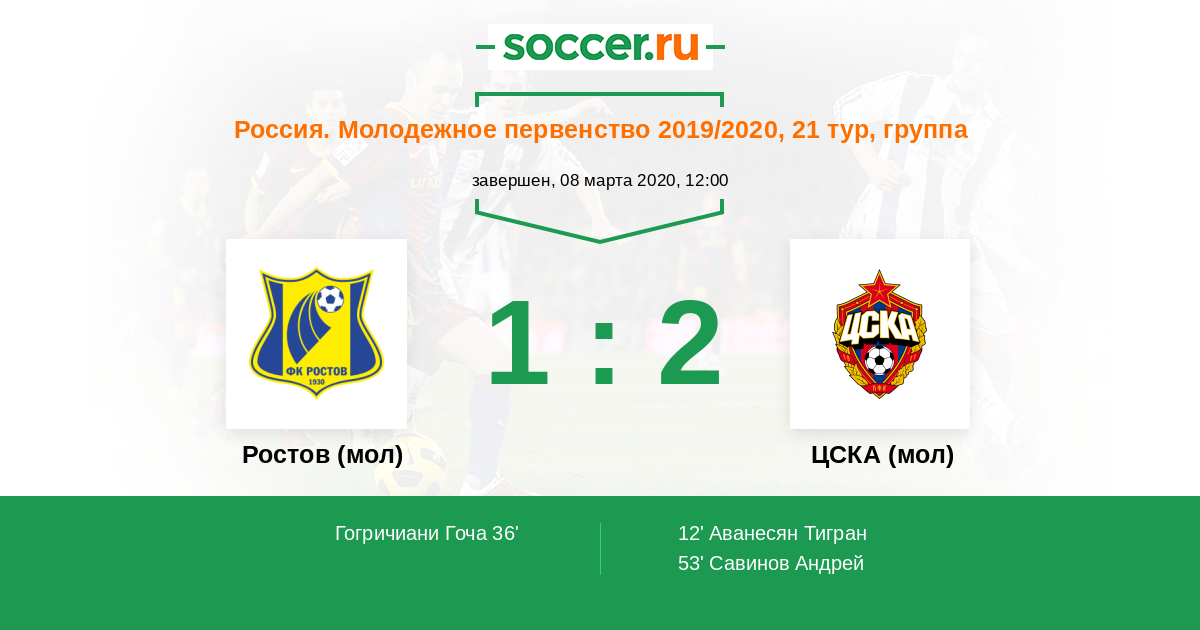 Протокол матча Ростов (мол) против ЦСКА (мол)
