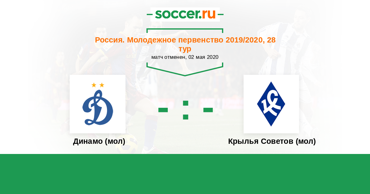 Россия. Премьер-Лига U21 19.04.2019 Динамо (мол) Логотип футбольный клуб Динамо (мол) (Москва) 3:1 Логотип футбольный клуб Крылья Советов (мол) (Самара) Крылья Советов (мол)