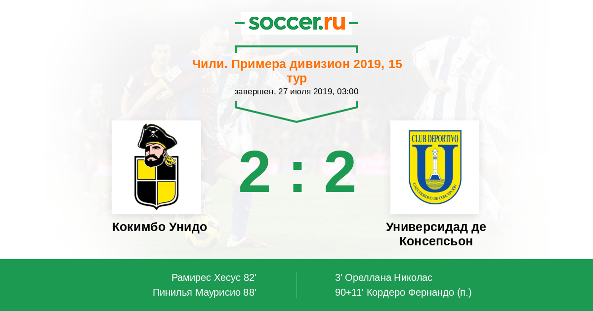 Протокол матча Кокимбо Унидо против Универсидад де Консепсьон