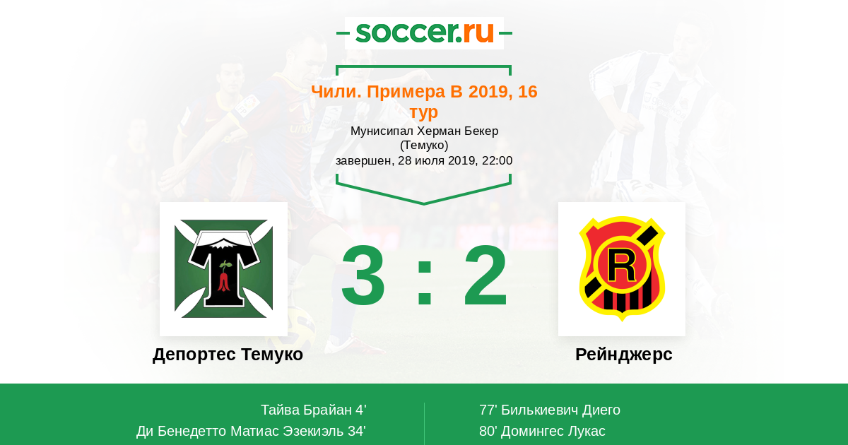 Протокол матча Депортес Темуко против Рейнджерс